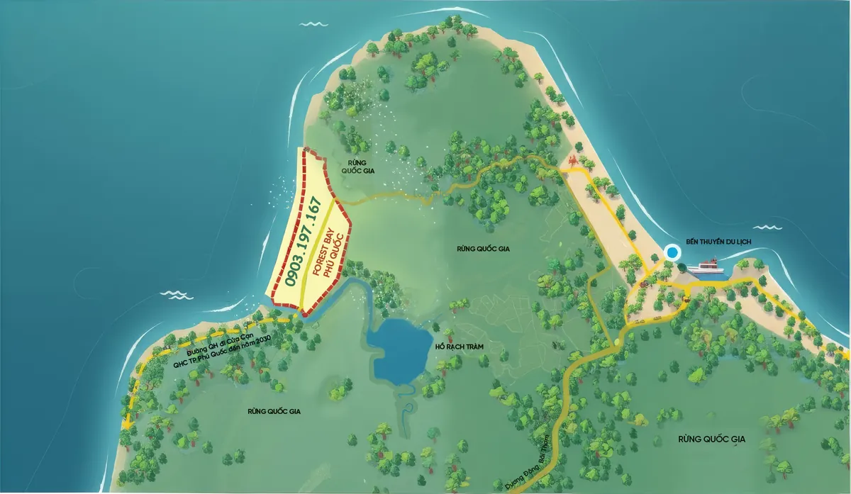 Thủy hệ: Sông Rạch Tràm—con sông lớn nhất Phú Quốc—chạy dọc theo rìa phía Nam khu đất, mang đến nguồn sinh khí dồi dào.
