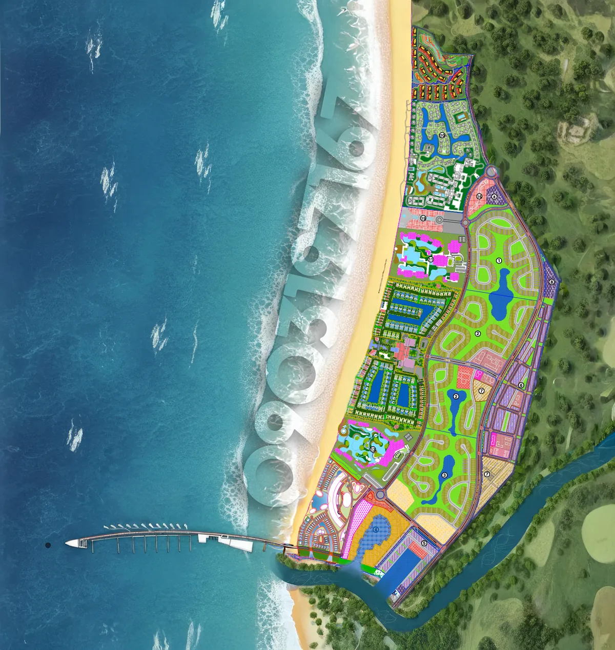 97.1Khu vực ven biển/mặt nước, tập trung các resort cao cấp, làng bán lẻ bãi biển, trung tâm thể thao dưới nước, và biệt thự du lịch ven biển.